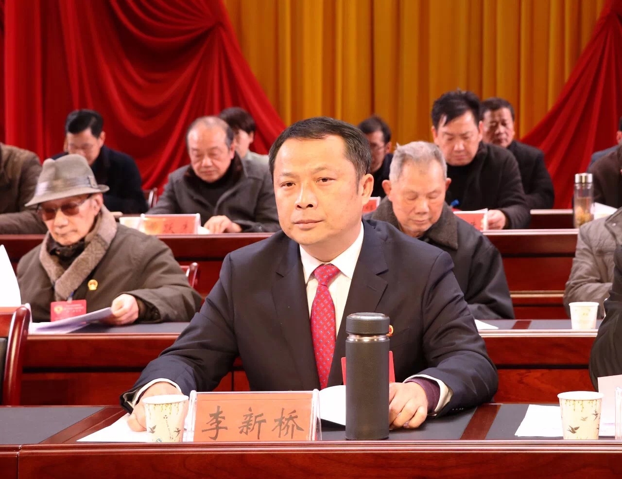 政协武穴市八届委员会主席会议成员郭茂兰、向华珍、苏新中、王卫平、张建平、毛永超、郭友德在主席台前排就座,在主席台就座的还有郝胜勇、李新桥、刘斌、郑勇平、金晓耕、雷洪、蔡军、高维鹏、吴怀高、吴愿明、徐平权、李俊东等市委、市人大、市政府领导、法院、检察院主要领导、人武部领导、湿地公园、武穴师范领导、梅川镇党委、开发区主要领导、市在职副处级以上领导、退休正处级以上老领导以及政协常委会全体组成人员。